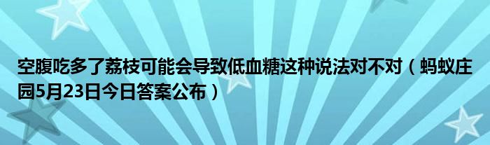 空腹吃多了荔枝可能會(huì)導(dǎo)致低血糖這種說(shuō)法對(duì)不對(duì)(螞蟻莊園5月23日今日答案公布)