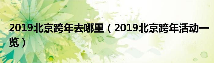 大家好,綜合小編來為大家講解下。2019北京跨年去哪里,2019北京跨年活動(dòng)一覽很多人還不知道,現(xiàn)在讓我們一起來看看吧!