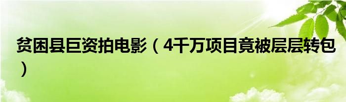 大家好,綜合小編來為大家講解下。貧困縣巨資拍電影,4千萬項(xiàng)目竟被層層轉(zhuǎn)包很多人還不知道,現(xiàn)在讓我們一起來看看吧!