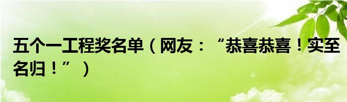 大家好,綜合小編來為大家講解下。五個一工程獎名單,網友:“恭喜恭喜!實至名歸!”很多人還不知道,現在讓我們一起來看看吧!