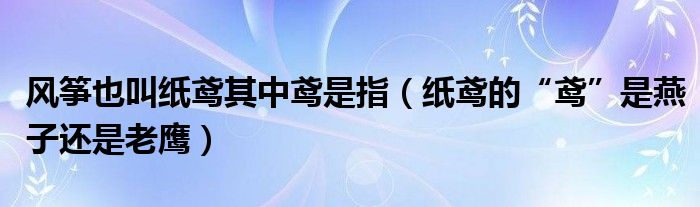 大家好,綜合小編來為大家講解下。風(fēng)箏也叫紙鳶其中鳶是指,紙鳶的“鳶”是燕子還是老鷹很多人還不知道,現(xiàn)在讓我們一起來看看吧!