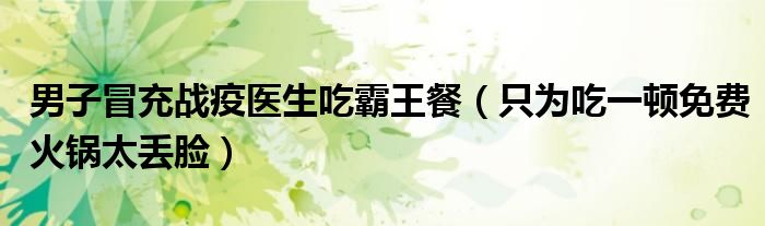 大家好,綜合小編來為大家講解下。男子冒充戰疫醫生吃霸王餐,只為吃一頓免費火鍋太丟臉很多人還不知道,現在讓我們一起來看看吧!
