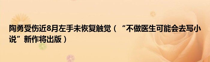 大家好,綜合小編來為大家講解下。陶勇受傷近8月左手未恢復(fù)觸覺,“不做醫(yī)生可能會去寫小說”新作將出版很多人還不知道,現(xiàn)在讓我們一起來看看吧!