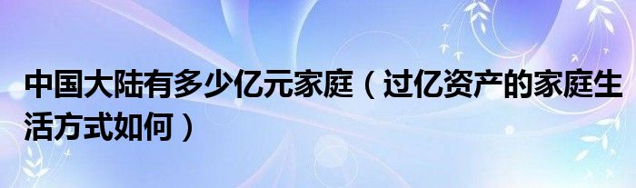 大家好,綜合小編來為大家講解下。中國大陸有多少億元家庭,過億資產的家庭生活方式如何很多人還不知道,現在讓我們一起來看看吧!
