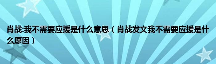 大家好,綜合小編來為大家講解下。肖戰(zhàn):我不需要應(yīng)援是什么意思,肖戰(zhàn)發(fā)文我不需要應(yīng)援是什么原因很多人還不知道,現(xiàn)在讓我們一起來看看吧!