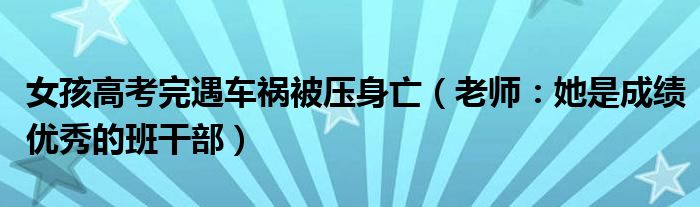 大家好,綜合小編來為大家講解下。女孩高考完遇車禍被壓身亡,老師:她是成績優秀的班干部很多人還不知道,現在讓我們一起來看看吧!
