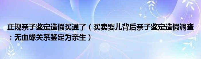 大家好,綜合小編來為大家講解下。正規親子鑒定造假買通了,買賣嬰兒背后親子鑒定造假調查:無血緣關系鑒定為親生很多人還不知道,現在讓我們一起來看看吧!