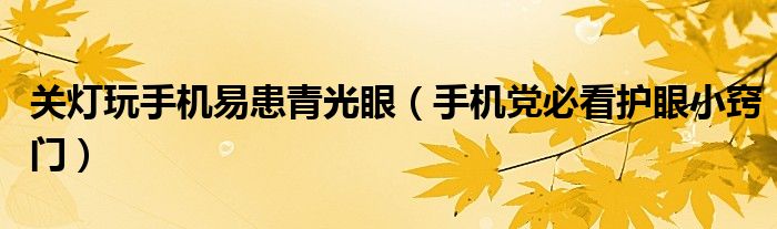 大家好,綜合小編來為大家講解下。關燈玩手機易患青光眼,手機黨必看護眼小竅門很多人還不知道,現在讓我們一起來看看吧!