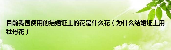 大家好,綜合小編來為大家講解下。目前我國使用的結婚證上的花是什么花,為什么結婚證上用牡丹花很多人還不知道,現在讓我們一起來看看吧!