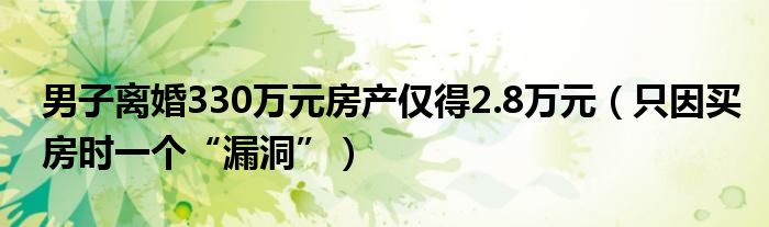 大家好,綜合小編來為大家講解下。男子離婚330萬元房產僅得2.8萬元,只因買房時一個“漏洞”很多人還不知道,現在讓我們一起來看看吧!