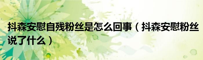 大家好,綜合小編來為大家講解下。抖森安慰自殘粉絲是怎么回事,抖森安慰粉絲說了什么很多人還不知道,現在讓我們一起來看看吧!