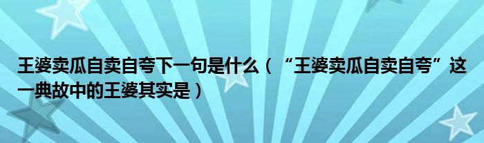 大家好,綜合小編來為大家講解下。王婆賣瓜自賣自夸下一句是什么,“王婆賣瓜自賣自夸”這一典故中的王婆其實是很多人還不知道,現在讓我們一起來看看吧!