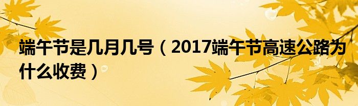 大家好,綜合小編來為大家講解下。端午節是幾月幾號,2017端午節高速公路為什么收費很多人還不知道,現在讓我們一起來看看吧!