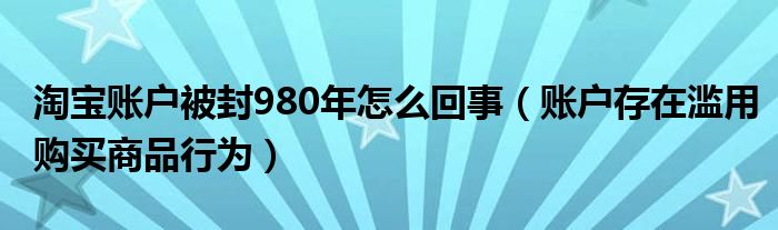 大家好,綜合小編來為大家講解下。淘寶賬戶被封980年怎么回事,賬戶存在濫用購買商品行為很多人還不知道,現在讓我們一起來看看吧!