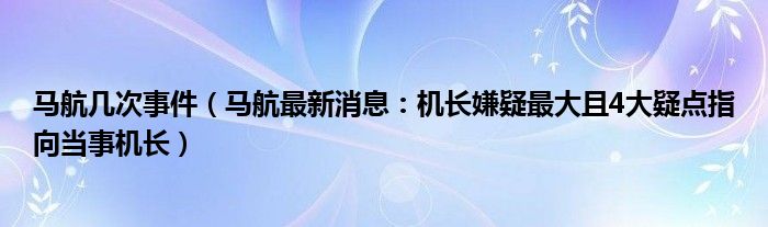 導(dǎo)讀 大家好,綜合小編來(lái)為大家講解下。馬航幾次事件,馬航最新消息:機(jī)長(zhǎng)嫌疑最大且4大疑點(diǎn)指向當(dāng)事機(jī)長(zhǎng)很多人還不知道,現(xiàn)在讓我們一起來(lái)看看