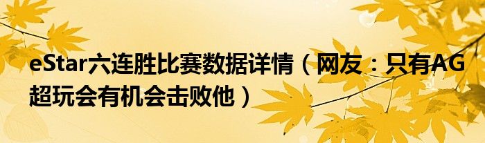 大家好,綜合小編來為大家講解下。eStar六連勝比賽數據詳情,網友:只有AG超玩會有機會擊敗他很多人還不知道,現在讓我們一起來看看吧!