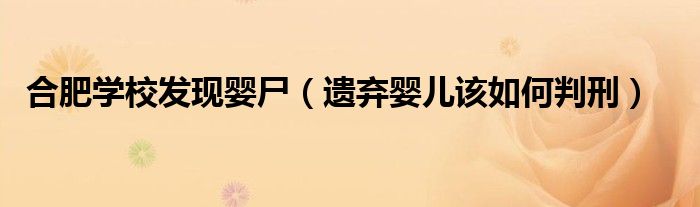 大家好,綜合小編來為大家講解下。合肥學(xué)校發(fā)現(xiàn)嬰尸,遺棄嬰兒該如何判刑很多人還不知道,現(xiàn)在讓我們一起來看看吧!