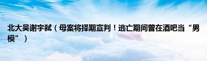 大家好,綜合小編來為大家講解下。北大吳謝宇弒,母案將擇期宣判!逃亡期間曾在酒吧當(dāng)“男模”很多人還不知道,現(xiàn)在讓我們一起來看看吧!