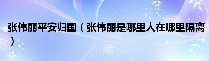 大家好,綜合小編來為大家講解下。張偉麗平安歸國,張偉麗是哪里人在哪里隔離很多人還不知道,現在讓我們一起來看看吧!