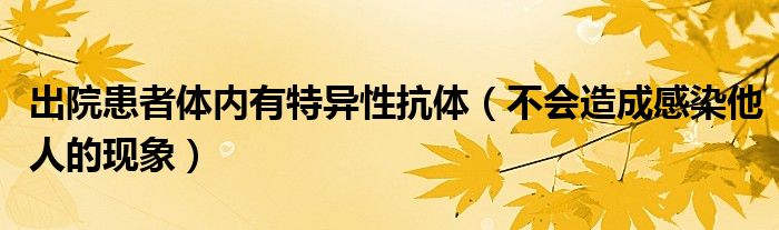 大家好,綜合小編來為大家講解下。出院患者體內有特異性抗體,不會造成感染他人的現象很多人還不知道,現在讓我們一起來看看吧!