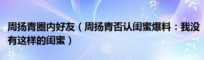 大家好,綜合小編來為大家講解下。周揚青圈內好友,周揚青否認閨蜜爆料:我沒有這樣的閨蜜很多人還不知道,現在讓我們一起來看看吧!