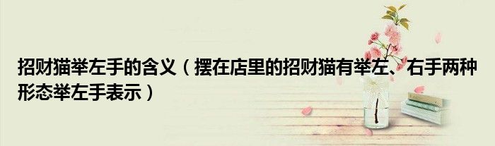 大家好,綜合小編來為大家講解下。招財貓舉左手的含義,擺在店里的招財貓有舉左、右手兩種形態舉左手表示很多人還不知道,現在讓我們一起來看看吧!