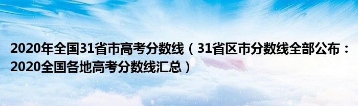 大家好,綜合小編來為大家講解下。2020年全國31省市高考分數線,31省區市分數線全部公布:2020全國各地高考分數線匯總很多人還不知道,現在讓我們一起來看看吧!