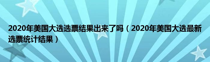 大家好,綜合小編來為大家講解下。2020年美國大選選票結果出來了嗎,2020年美國大選最新選票統計結果很多人還不知道,現在讓我們一起來看看吧!