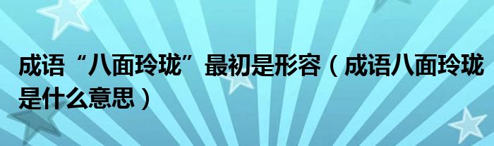 大家好,綜合小編來為大家講解下。成語“八面玲瓏”最初是形容,成語八面玲瓏是什么意思很多人還不知道,現(xiàn)在讓我們一起來看看吧!