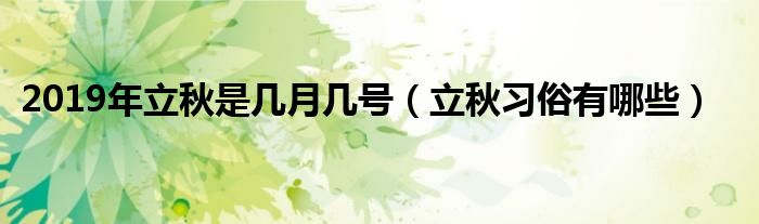 大家好,綜合小編來為大家講解下。2019年立秋是幾月幾號,立秋習俗有哪些很多人還不知道,現在讓我們一起來看看吧!