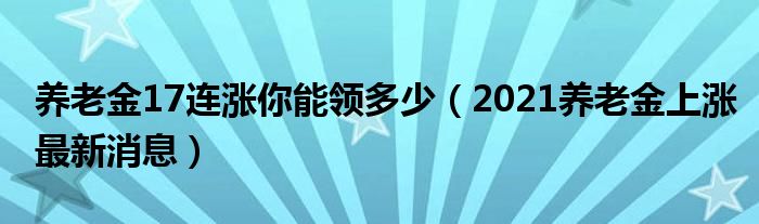 大家好,綜合小編來為大家講解下。養老金17連漲你能領多少,2021養老金上漲最新消息很多人還不知道,現在讓我們一起來看看吧!