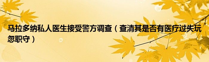 大家好,綜合小編來為大家講解下。馬拉多納私人醫生接受警方調查,查清其是否有醫療過失玩忽職守很多人還不知道,現在讓我們一起來看看吧!