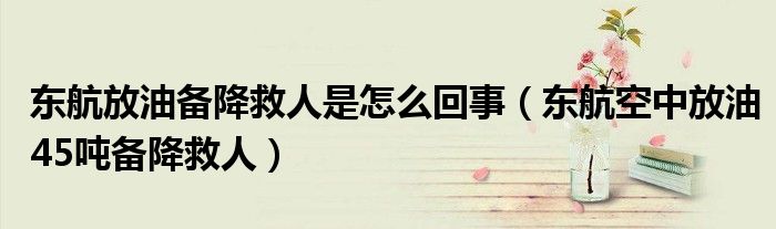 大家好,綜合小編來為大家講解下。東航放油備降救人是怎么回事,東航空中放油45噸備降救人很多人還不知道,現在讓我們一起來看看吧!