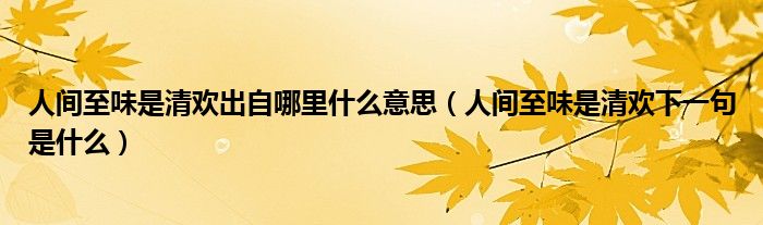 大家好,綜合小編來為大家講解下。人間至味是清歡出自哪里什么意思,人間至味是清歡下一句是什么很多人還不知道,現在讓我們一起來看看吧!