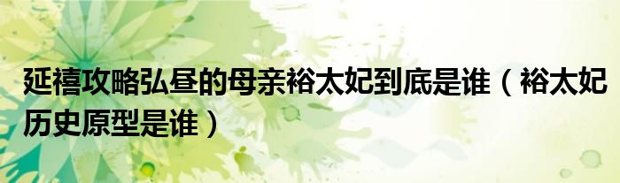 大家好,綜合小編來為大家講解下。延禧攻略弘晝的母親裕太妃到底是誰,裕太妃歷史原型是誰很多人還不知道,現在讓我們一起來看看吧!