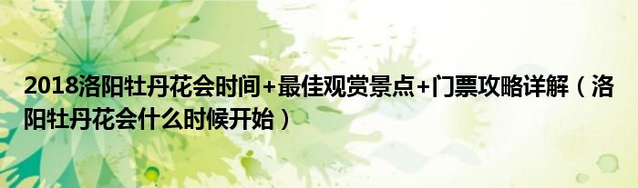 大家好,綜合小編來為大家講解下。2018洛陽牡丹花會時間+最佳觀賞景點+門票攻略詳解,洛陽牡丹花會什么時候開始很多人還不知道,現在讓我們一起來看看吧!