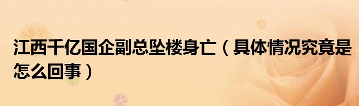 大家好,綜合小編來為大家講解下。江西千億國企副總墜樓身亡,具體情況究竟是怎么回事很多人還不知道,現在讓我們一起來看看吧!