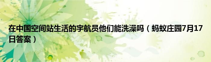 大家好,綜合小編來為大家講解下。在中國空間站生活的宇航員他們能洗澡嗎,螞蟻莊園7月17日答案很多人還不知道,現在讓我們一起來看看吧!