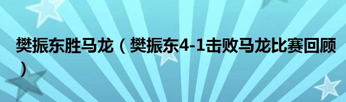 大家好,綜合小編來為大家講解下。樊振東勝馬龍,樊振東4-1擊敗馬龍比賽回顧很多人還不知道,現在讓我們一起來看看吧!