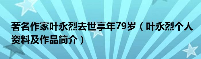 大家好,綜合小編來為大家講解下。著名作家葉永烈去世享年79歲,葉永烈個人資料及作品簡介很多人還不知道,現在讓我們一起來看看吧!