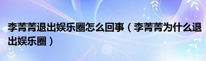 大家好,綜合小編來(lái)為大家講解下。李菁菁退出娛樂(lè)圈怎么回事,李菁菁為什么退出娛樂(lè)圈很多人還不知道,現(xiàn)在讓我們一起來(lái)看看吧!
