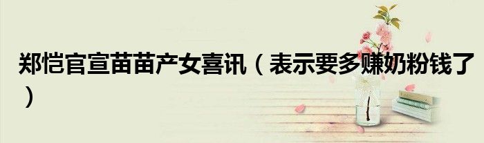 大家好,綜合小編來為大家講解下。鄭愷官宣苗苗產女喜訊,表示要多賺奶粉錢了很多人還不知道,現在讓我們一起來看看吧!