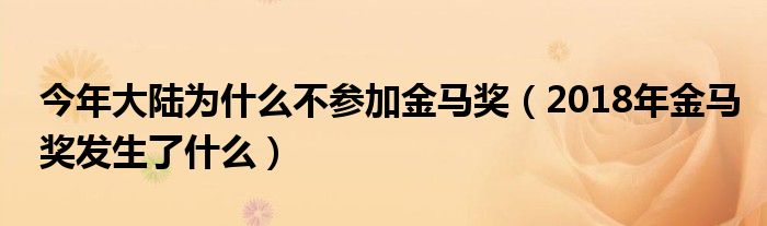 大家好,綜合小編來為大家講解下。今年大陸為什么不參加金馬獎,2018年金馬獎發生了什么很多人還不知道,現在讓我們一起來看看吧!