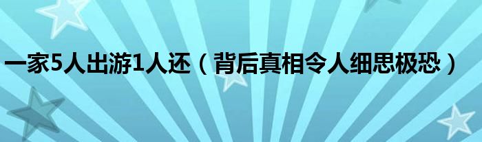 大家好,綜合小編來為大家講解下。一家5人出游1人還,背后真相令人細思極恐很多人還不知道,現在讓我們一起來看看吧!