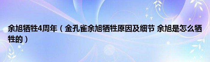 大家好,綜合小編來為大家講解下。余旭犧牲4周年,金孔雀余旭犧牲原因及細節(jié) 余旭是怎么犧牲的很多人還不知道,現(xiàn)在讓我們一起來看看吧!