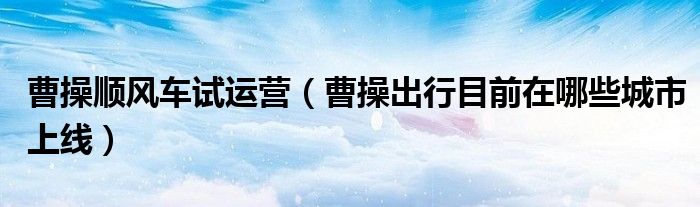 大家好,綜合小編來為大家講解下。曹操順風車試運營,曹操出行目前在哪些城市上線很多人還不知道,現在讓我們一起來看看吧!