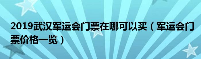 大家好,綜合小編來為大家講解下。2019武漢軍運會門票在哪可以買,軍運會門票價格一覽很多人還不知道,現在讓我們一起來看看吧!