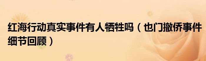 大家好,綜合小編來為大家講解下。紅海行動真實事件有人犧牲嗎,也門撤僑事件細節(jié)回顧很多人還不知道,現(xiàn)在讓我們一起來看看吧!