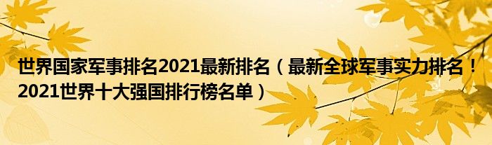 大家好,綜合小編來為大家講解下。世界國家軍事排名2021最新排名,最新全球軍事實力排名!2021世界十大強國排行榜名單很多人還不知道,現在讓我們一起來看看吧!