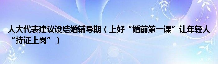 大家好,綜合小編來為大家講解下。人大代表建議設結婚輔導期,上好“婚前第一課”讓年輕人“持證上崗”很多人還不知道,現在讓我們一起來看看吧!